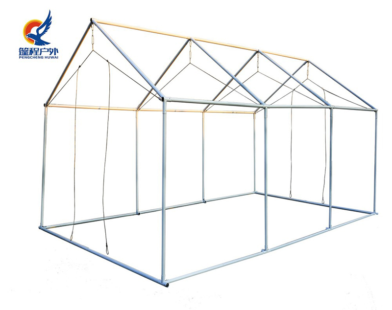 Ukuthembeka kwetende kuqala kusukela ekuphishekeleni ubuhle bobukhulu nezinto zokwakha. I-Pengcheng Outdoor isebenzisa amapayipi ashiselwe ekhwalithi ephezulu anemvamisa ephezulu, acutshungulwa ukugoba okunembayo okuphezulu ngemishini yokugoba ipayipi ye-CNC ukuze kuqinisekiswe ukuthi ubakaki ngamunye ufana ngokunembile nokuphakama kwesiqongo okuklanyelwe nokuphakama kwe-eave—lokhu kuyimfuneko engokwenyama yokuhlanganisa itende ngokushesha kanye nokuzinza okuphelele kwesakhiwo. Wonke amapayipi ensimbi aphathwa ngokufafazwa ngopende ukuze akhe isendlalelo esiqinile sokuvikela ukumelana nokugqwala. Indwangu yetende ibalwa futhi isikwe ngokuvumelana nobukhulu obunembile: sisebenzisa indwangu ye-Oxford ephezulu engangeni manzi ene-PVC enezinhlangothi ezimbili, ehlanganisa imisebenzi eminingi njengokuvimbela amanzi, ukumelana nokukhunta, nokumelana ne-UV, ukuqinisekisa ukuqina komkhiqizo nokugcinwa okulula ngokombono wezinto ezibonakalayo.